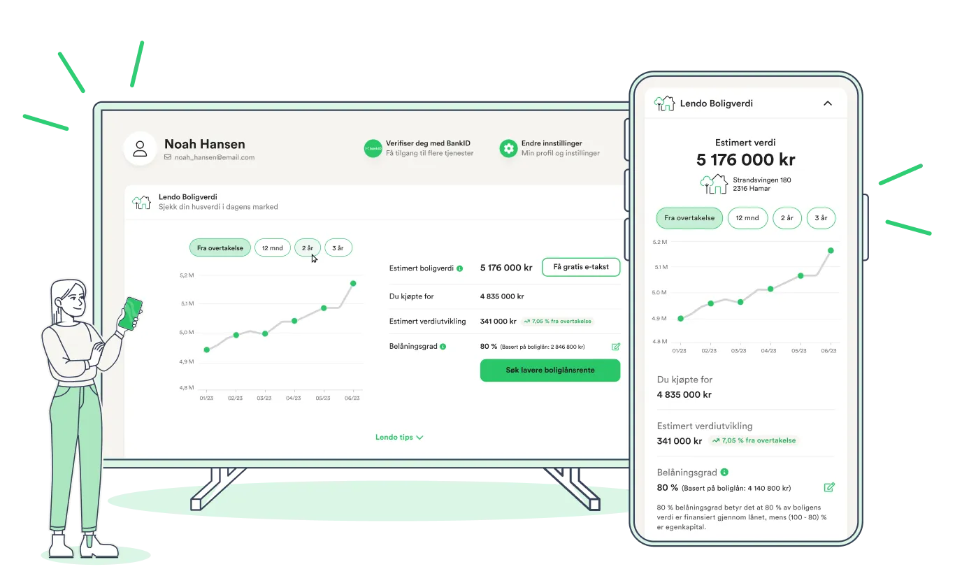 Legg inn boliglånet ditt, så beregner vi belåningsgraden automatisk basert på estimert boligverdi.